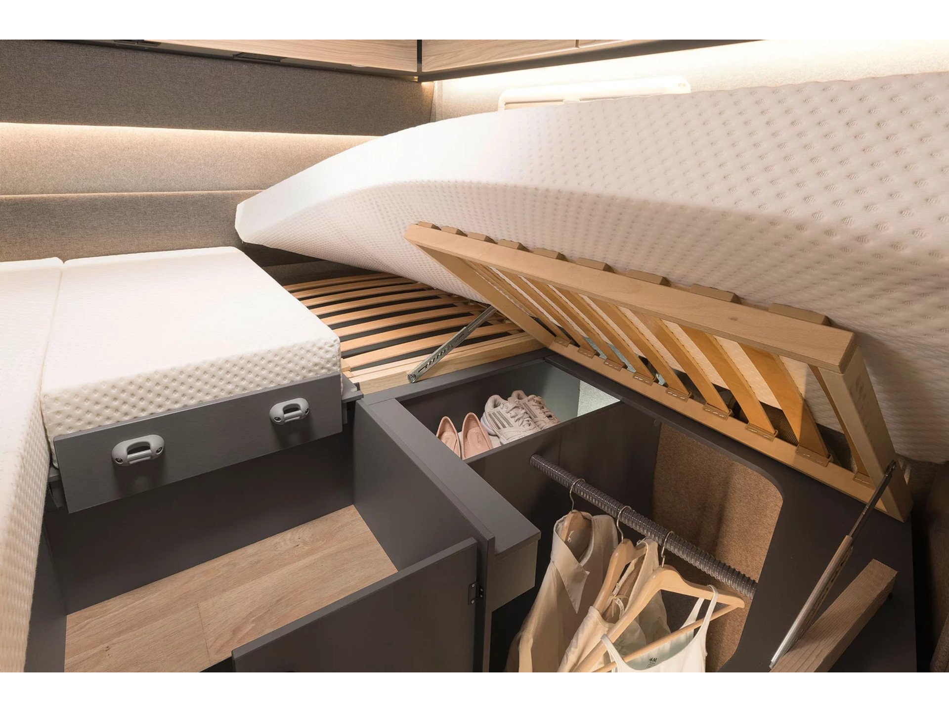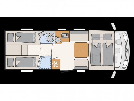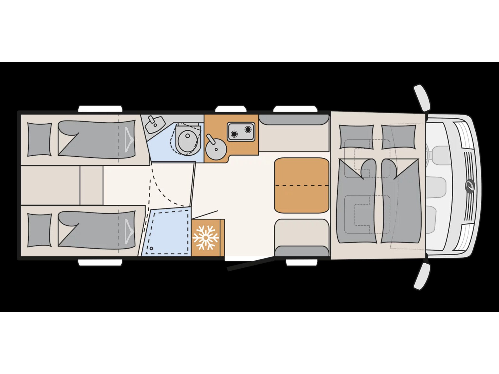 Lengte bedden achterin met uitneembaar middendeel