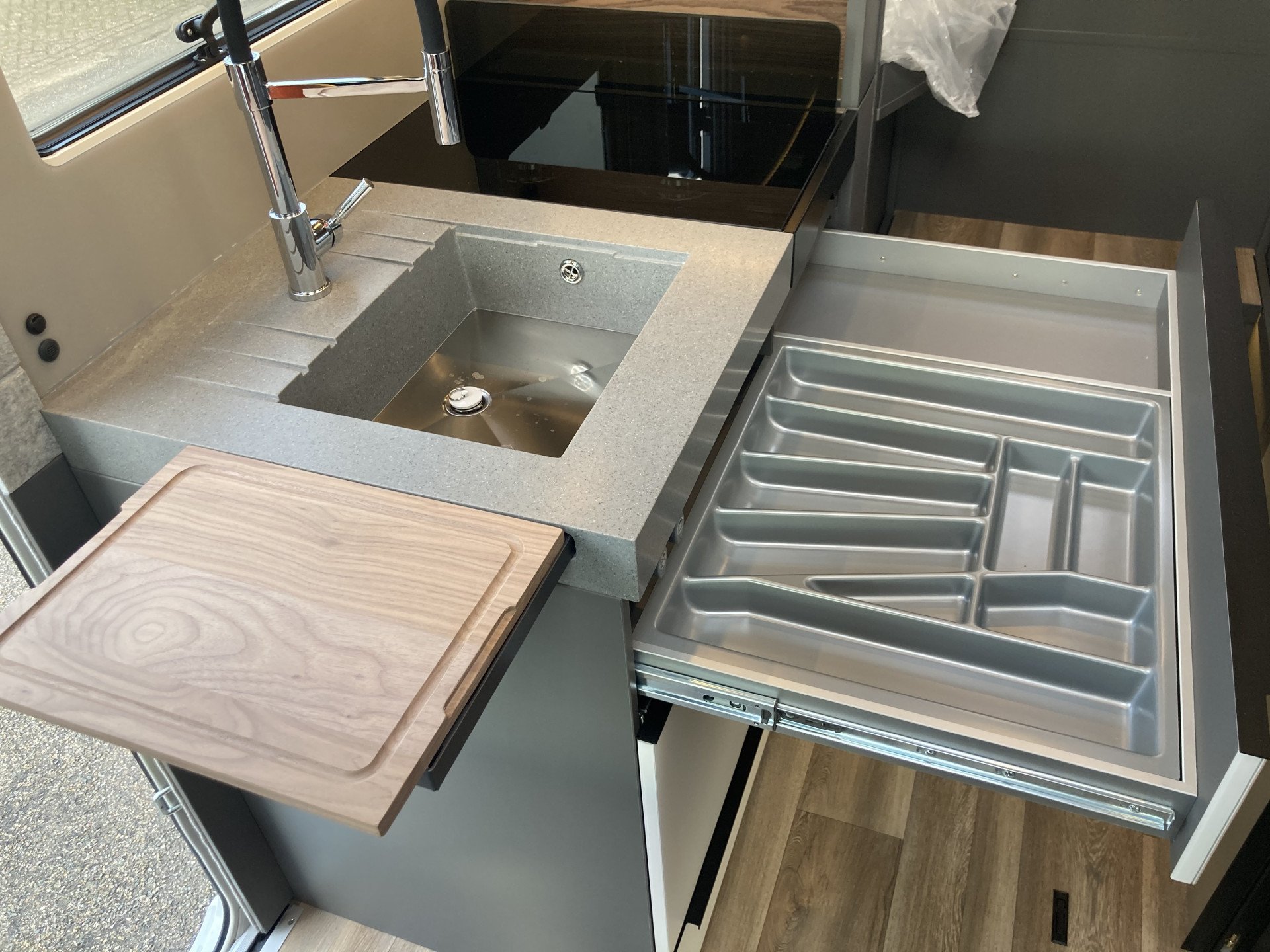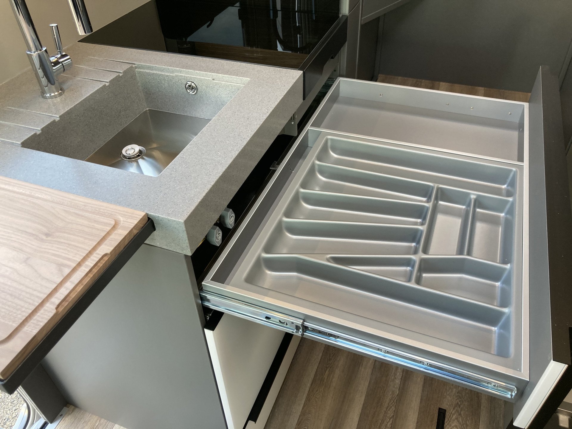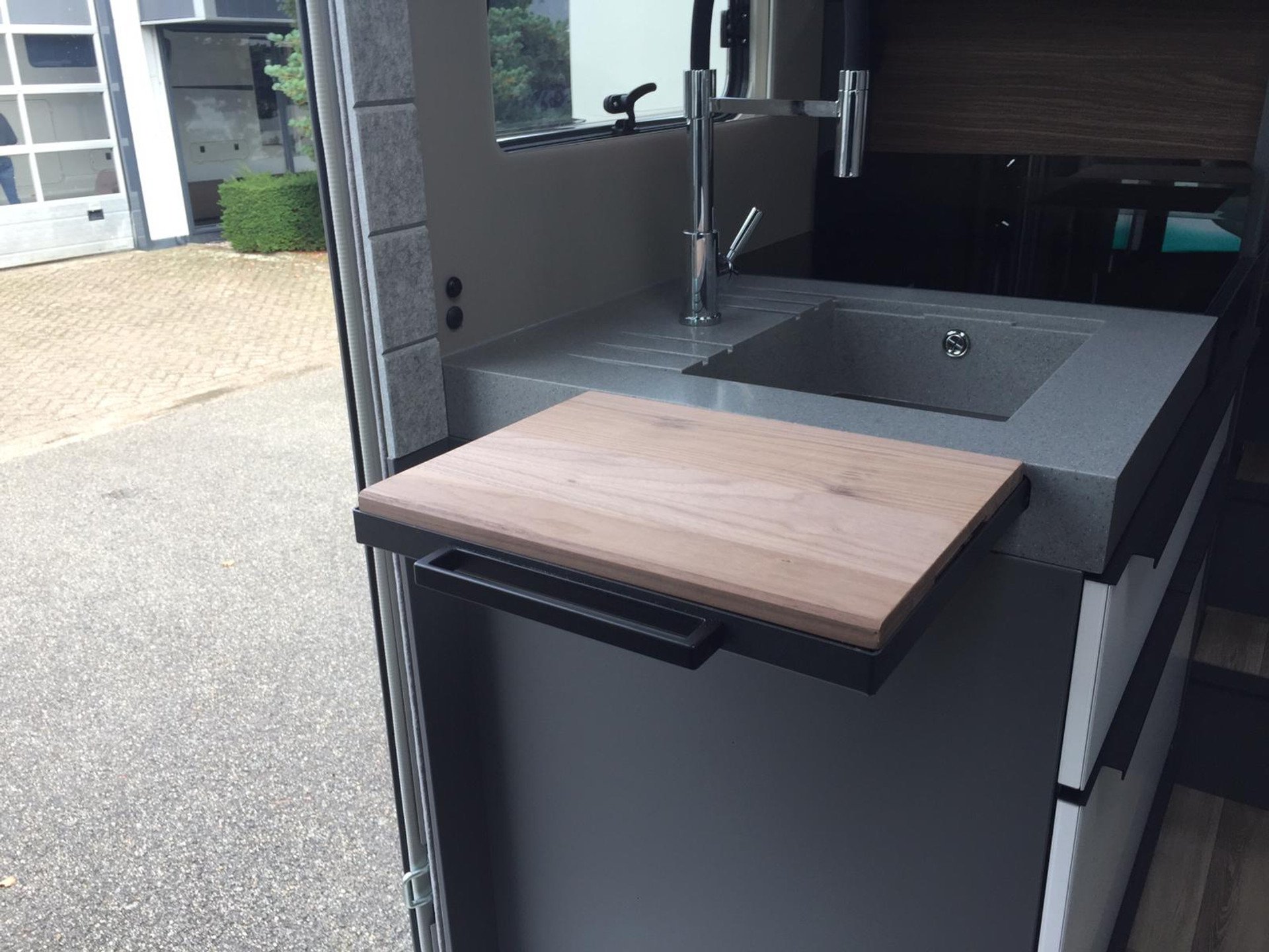 • Keukenblad van hoogwaardig massief kunststof