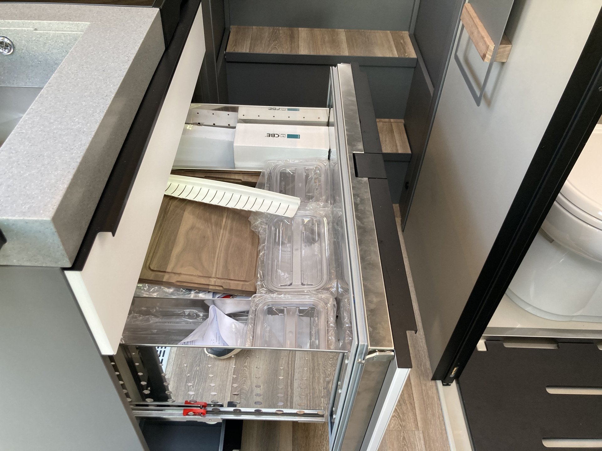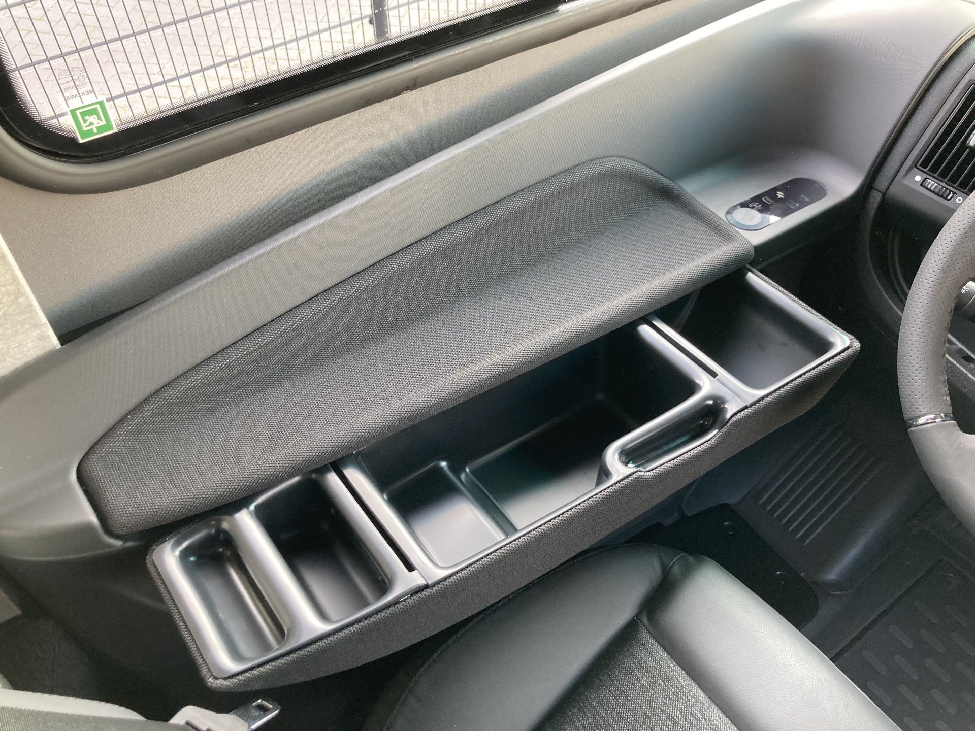 Uitschuifbare opbergsysteem aan bijrijderszijde